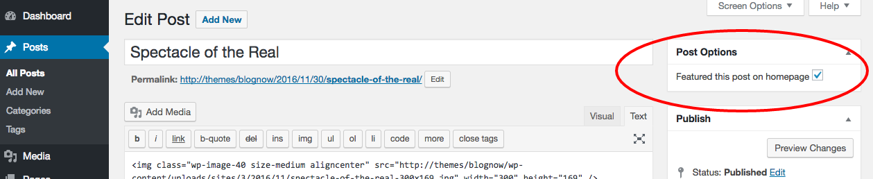 Edit any post and tick the Featured this post on homepage checkbox from Post Options (how to)